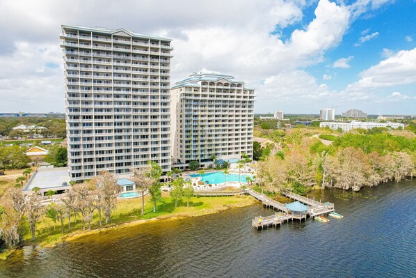 On-site, you'll also find a game room, fitness center, and several nearby dining options to suit any craving. Or, stay in and enjoy a home-cooked meal on your private balcony overlooking the lake. Whether you’re seeking thrills or relaxation, Blue Heron Beach Resort is the ideal place for your Orlando getaway.