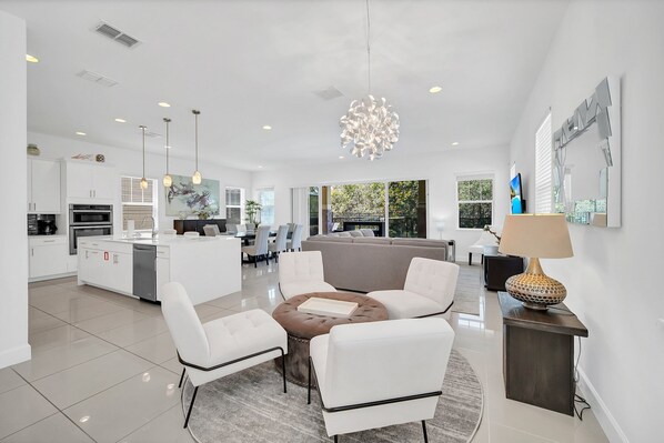 Step outside to your own private oasis, where a sparkling swimming pool awaits. The secluded deck area is perfect for soaking up the Florida sun, with comfortable sun loungers and a dining table and chairs for al fresco meals and relaxation.
