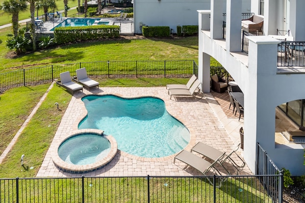 This home has an outdoor pool without a screen enclosure that is cleaned and serviced once a week. Please be aware that in-between the weekly clean all outdoor pools are susceptible to some minor debris such as mulch or leaves being blown into the pool. Especially during periods of heavy rain. A skimmer net is provided to remove any debris in between the weekly cleans.