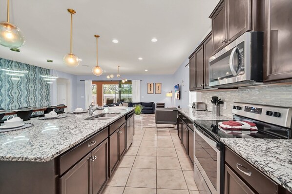 Fully Equipped Kitchen with Granite Countertops and Stainless Steel Appliances