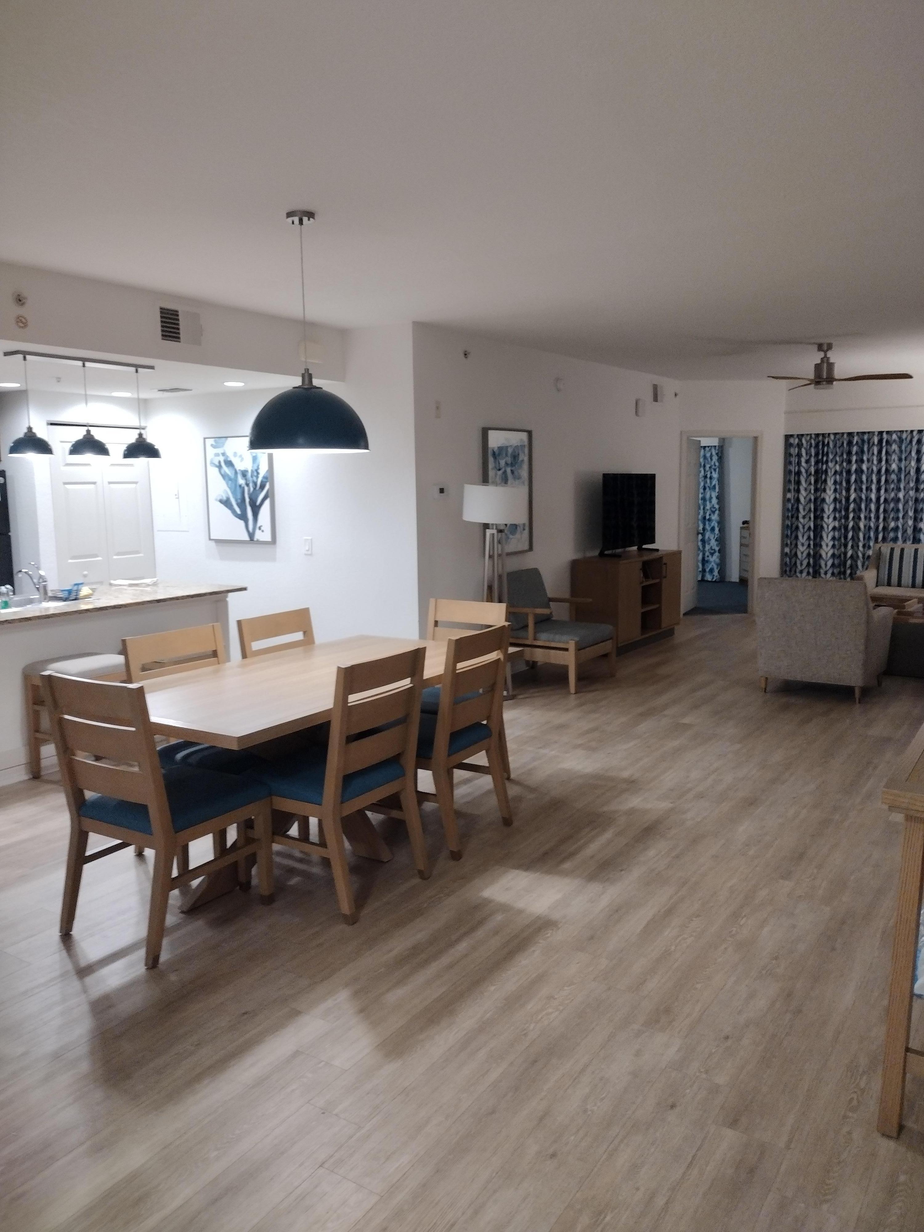 My family and I enjoyed our time at Mystic Dunes! The property was clean and our two bedroom apartment was clean and very spacious! Staff was very supportive and friendly! Jemena was amazing and stayed connected with us the entire time of our stay, checking in and making sure our stay was comfortable. Breakfast at the restaurant was delicious, satisfying and affordable . There are many outdoor pool. The one closest to had many seating. I especially enjoyed the hammock! I’d definitely go back with friends and family!!!