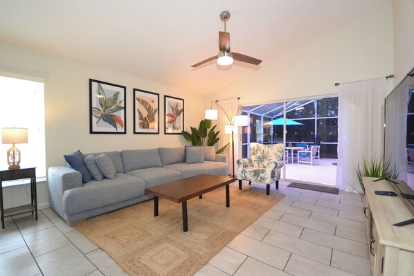 Newly updated home with south facing private pool deck, games room and themed bedrooms