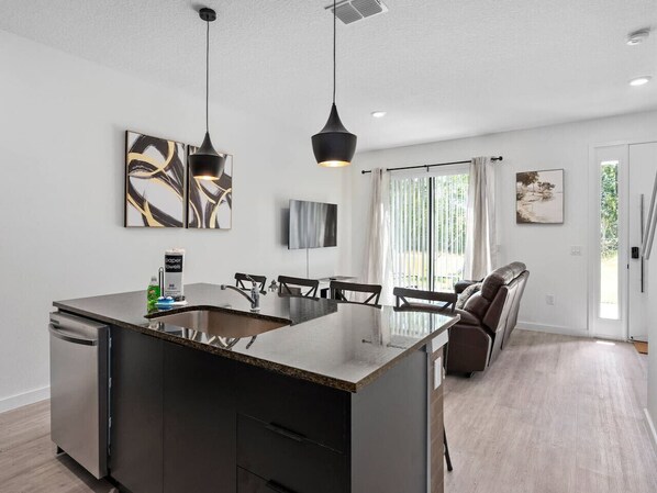 🍽️ Fully equipped American-style kitchen, integrated with TV room
