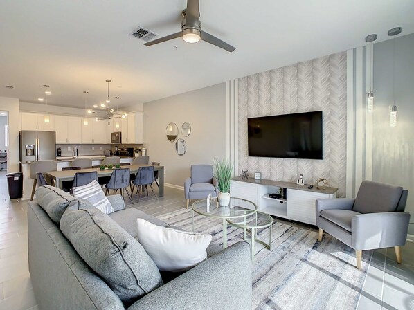 Hey there! How about escaping to our lovely condo in Four Corners, Florida? It's a fantastic spot for families and friends! You'll have plenty of room with 3 bedrooms, 2 bathrooms, and a kitchen ready for anything. Plus, you get to enjoy all the resort perks and have fun at two amazing clubhouses. It's super close to all the theme parks and water parks, making your vacation easy and fun. Come on, book now and be one of the first to check out the new Epic Universe park!