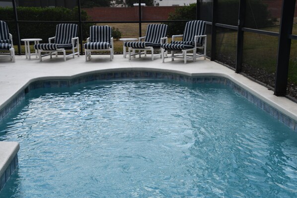 Lovely house and neighborhood. I chose this house for our disney vacation during the week of Christmas. We drove 14 hours to get there, so i wanted a place with a heated pool to relax in when we arrive. We arrived at 7pm and went straight to the pool, it was 68 degrees outside and the pool was colder that the temp outside. We told them we wanted to be refunded for the pool heat the following day, and they still charged us for the 1st day, even though we couldnt get in it.