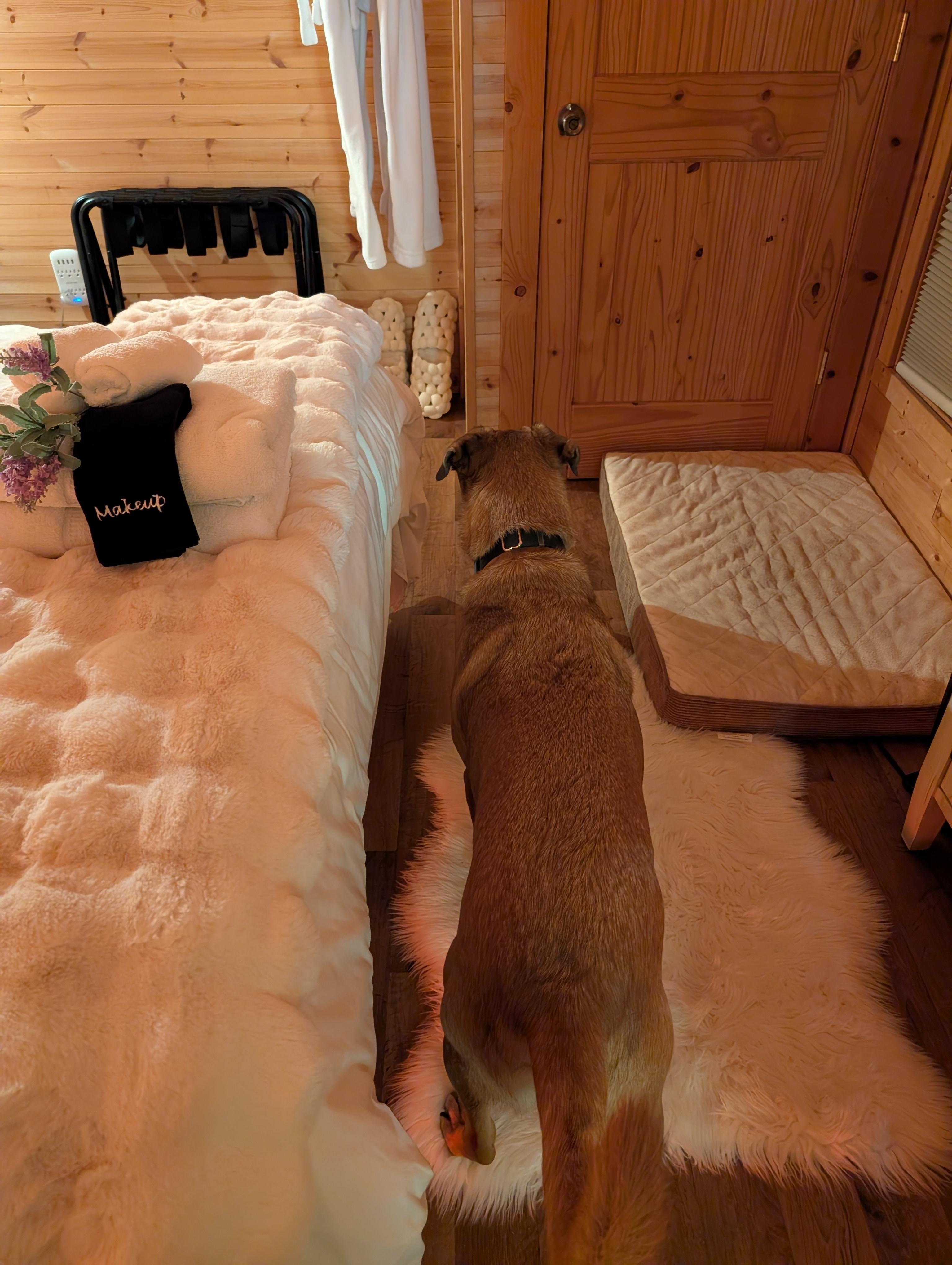Dazu kommt unser Top Dog Package. Offensichtlich sollte Ihr Welpe während Sie Ihre Ferienmiete genießen, es nicht abfedern müssen! Wir stellen Ihnen während der Anmietung ein hygienisches Haustierbett, ein Trockenshampoo, Pfotentücher, Haustierabfallbeutel, Designerfutter- und Wasserschalen, Tischset für Haustiere, Mikrofaser-Haustierhandtücher und unser charakteristisches Endlos-Leckerbissenglas zur Verfügung.