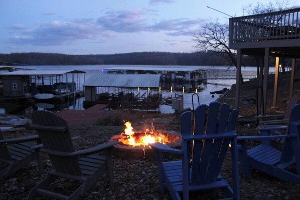Grand Glaize Views Hot Tub Dock Firepit