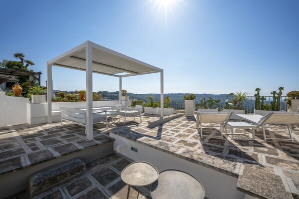 Ein elegantes historisches Stadthaus im Herzen der Altstadt von Ostuni, Palazzo Barone erstreckt sich über mehrere Ebenen und bietet atemberaubende Panoramablicke auf das Tal und das Meer. Diese exklusive Unterkunft verfügt über drei komfortable Doppe