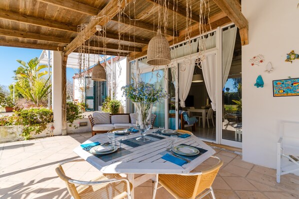Das geschmackvoll eingerichtete, angenehm kühle Innere bietet zwei großzügige, klimatisierte Doppelzimmer, eine voll ausgestattete Küche sowie ein gemütliches Wohnzimmer mit WLAN und TV. Das Herzstück der Villa ist der große Garten mit Olivenbäumen und Palmen. Hier erwartet Sie eine überdachte Veranda für Mahlzeiten im Freien, ein Grill sowie ein traditioneller Holzofen – perfekt für gesellige Abende unter dem Sternenhimmel von Salento. Ein reservierter Parkplatz auf dem Grundstück steht Ihnen ebenfalls zur Verfügung.