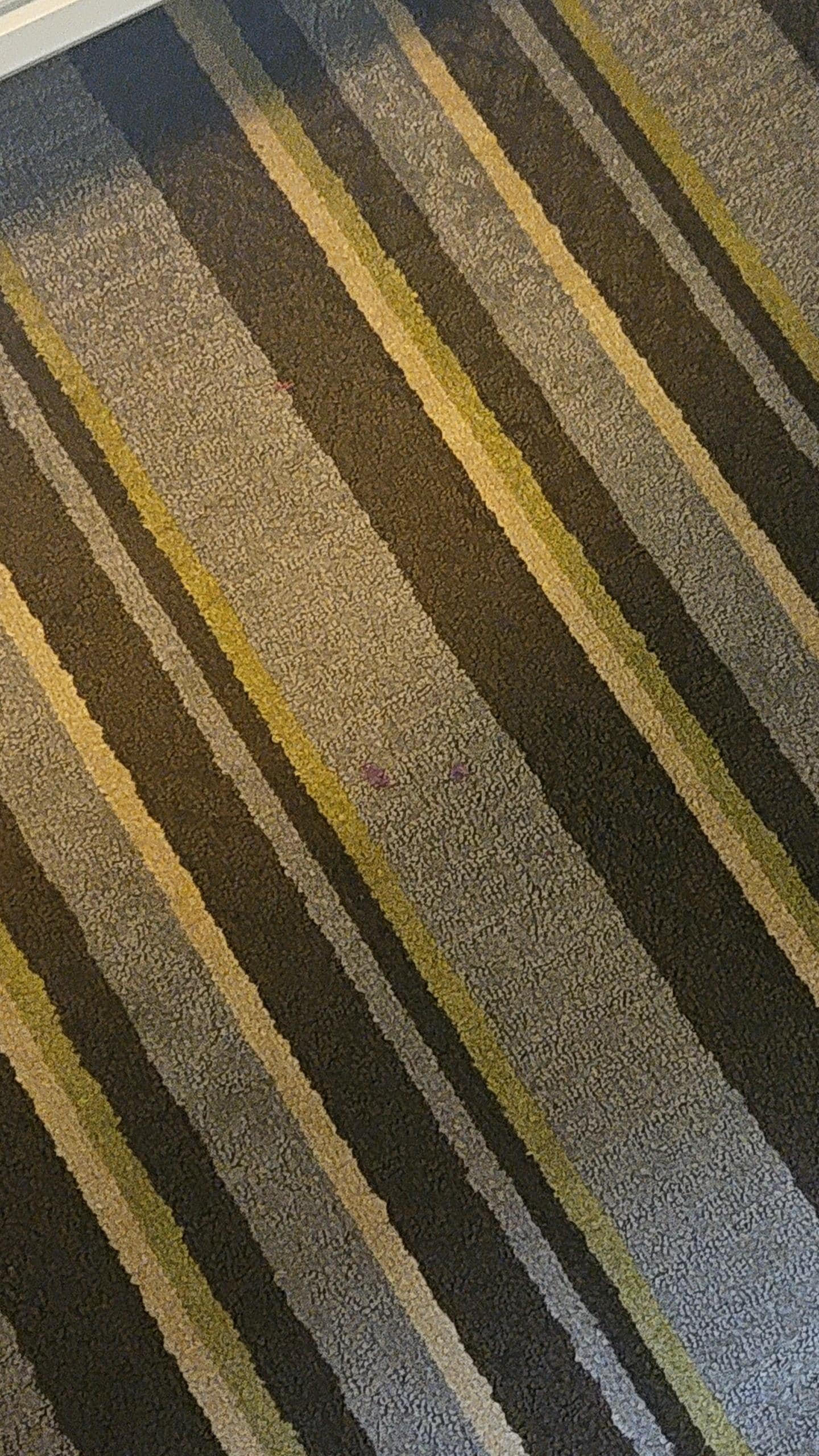 Upon arriving the container of kitty litter with a questionable liquid, trash all over and a shopping cart out front should have been a hint. Then getting to our room we found it less than clean. Blood stains on the floor, a towel had blood (or dark) stains on it. Found a red pill on the floor. Curtains werent on all the hooks and due to a late check in we had to hang them ourselves to shut them. Outlet next to sink didnt work. The bathroom had water spots and mold on the walls. The ceiling had dust and webs all over. The people upstairs were loud and stomping. Despite complaining it went on until after 1am. Fast forward to breakfast..... WHAT BREAKFAST? Only a gallon of milk, two half full cereals (which were stale) and questionable waffle mix. No juice, no coffee. Horrible experience. Cancelled our return stay in July for a wedding as we will not be back to this hotel.