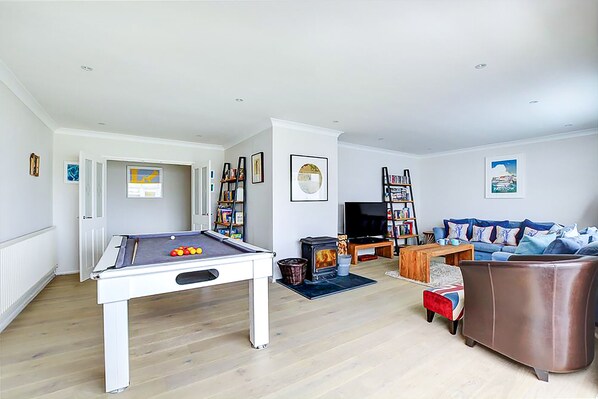 Extras von einem Holzofen, Billardtisch und Tischtennisplatte. Trevone