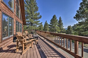 Indulge in the beauty of the Colorado mountains from this 4-bedroom, 3-bath Pagosa Springs cabin! Bring your fam and friends to make memories you will never forget in this secluded-yet-central location! Whether you are soaking in the hot springs, snow tubing, exploring the 5 acres on-site, or watching snow fall from the comfort of the cabin, adventure is never far! Boasting a full kitchen, wraparound deck, and yard games, this vacation rental is the perfect hub for all your mountain adventures.