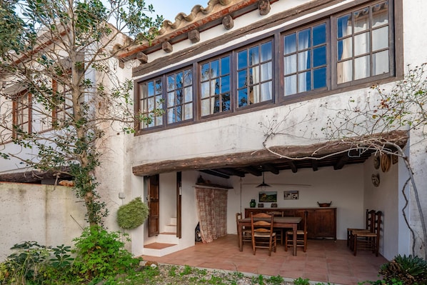 Im Innenhof befindet sich ein Anbau mit einem dritten Schlafzimmer mit Doppelbett, das über eine Treppe neben der Veranda zugänglich ist.