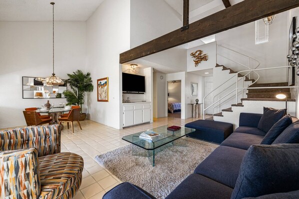 Wir bieten die beste Lage in der Gegend, nur einen halben Block entfernt von der unglaublichen Unterhaltung, Geschäften und Restaurants von El Paseo. Diese komfortable, wunderschön dekorierte zweistöckige Condo wird Ihre Flucht sein, für die Sie in die Wüste gekommen sind. Das geflieste Erdgeschoss umfasst eine voll ausgestattete Küche mit brandneuen Ofen, Mikrowelle und Elektroherd. Die Küche, das Wohnzimmer und das Esszimmer sind in einer offenen Konfiguration zusammengeführt, die dem Haus ein geräumiges, leichtes Gefühl verleiht und eine einfache Unterhaltung ermöglicht. Die Deckenventilatoren, Flachbild-TV mit Kabel-Service und kostenloses WLAN werden Ihr Urlaubserlebnis verbessern.