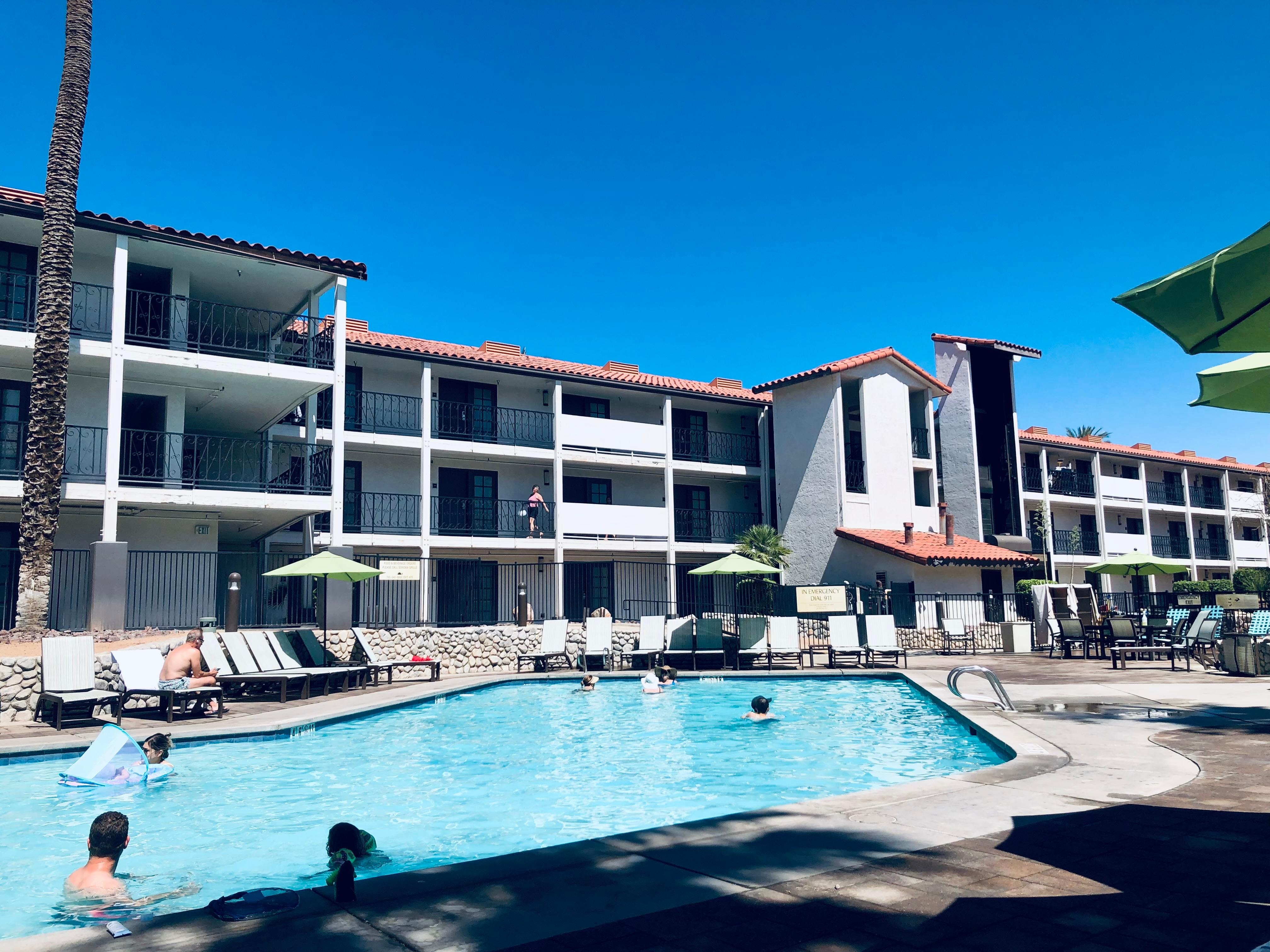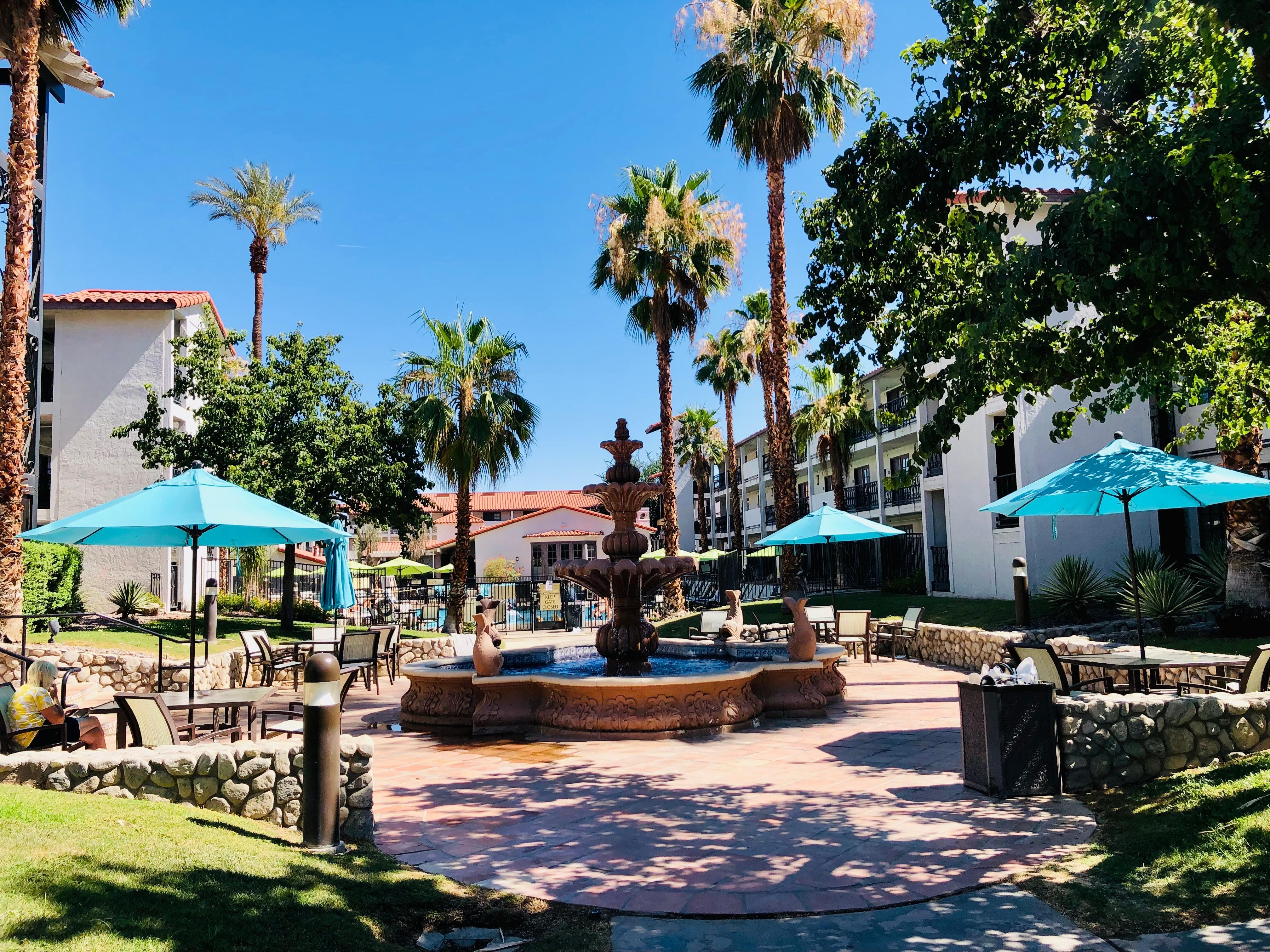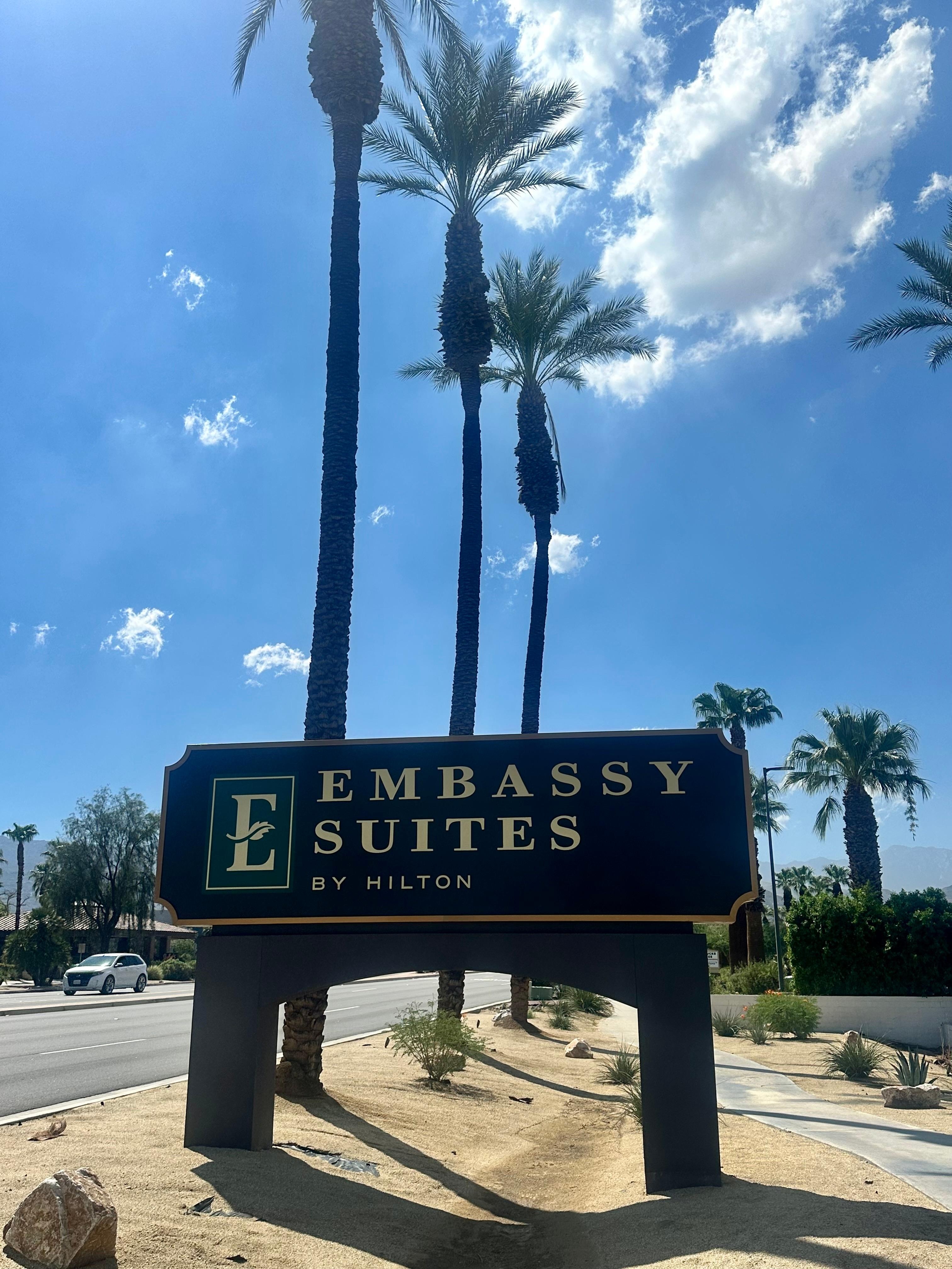 Photos are very misleading. This is NOT up to embassy suites’ standards. Dirty, messy, grounds that look unkept and need major work. Rooms were old, bathrooms were old. Rooms felt musty and unclean generally. Pool was very dirty and murky. Food was not like any other embassy suites I’ve stayed at. Front desk was extremely unhelpful. My child needed a restroom and we were told there are none. None in lobby, by pool, or anywhere other than the room. If I could give 0 stars I would. Also, the location is NOT Indian wells. It is Palm desert. Horrible experience will not stay again