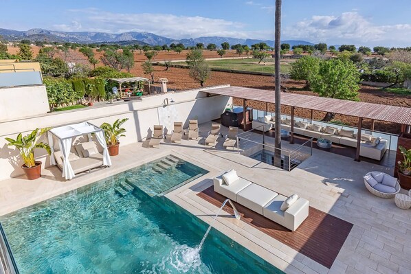 Diese Villa für Familien in Palma de Mallorca liegt in ländlicher Umgebung, nur 5 km entfernt von: Universität der Balearen, Mallorca Son Moix Stadion und Arabella Golf Mallorca. Ebenfalls in einem Umkreis von 10 km: Ca'n Pere Antoni Strand und Kathedrale von Palma.