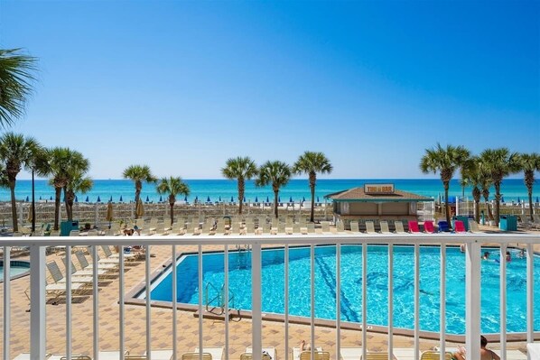 Beautiful newly remodeled 1 bedroom 1.5 Bath, 2nd-floor unit with breathtaking views!!! Fully equipped kitchen with washer/dryer combo. Find yourself steps from the beach at this spacious, family-friendly condo. Enjoy incredible views of the sugar white sands from your balcony, or prepare full meals and beach snacks in your well-equipped kitchen. On the ground level, work up a sweat in the fitness room, cool off in the shared pools, or walk right out onto the beach for days of fun in the surf and sun. With the perfect location and all this condo offers, what's not to love?!