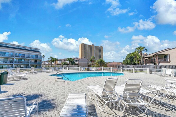 Welcome to Endless Summer D5, a charming 1BR/1BA condo located on the west end of Panama City Beach, just across the street from the pristine, sugar-white sands and sparkling Gulf waters. This cozy condo features a queen bed, twin over twin bunks in the bedroom, and a sleeper sofa in the living room, comfortably accommodating up to 4 guests. The fully equipped kitchen is perfect for preparing your favorite meals. Step outside to your private ground-floor patio, ideal for enjoying a morning coffee, and just steps away from the pool. Take a short stroll to the beach, relax by one of the two pools, and explore Pier Park, only 2 miles away! Discover why families return to Endless Summer D5 year after year!