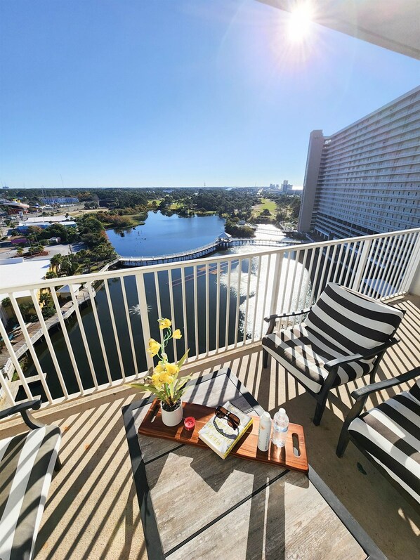 -Private Balcony, Overlooking the lake with A Vegas style Show Every Night