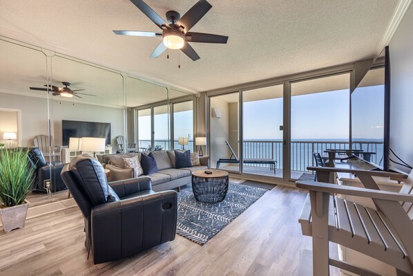 This beautiful oceanfront view from the 21st floor is breathtaking! The 4 Bedroom 3 Bath at Majestic Towers, Tower 1, offers a breathtaking view of the beach and gulf in addition to Free WiFi in the unit.