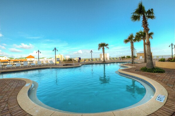 Phenomenal setting offering panoramic elevators, you cannot find anywhere else, heated pools, kiddie pools. Vegas style fountain show every night, you can enjoy from the privacy of your own balcony!