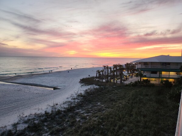 Jedes Zimmer hat eine raumhohe und von Wand zu Wand reichende Aussicht auf den Golf, fühlen Sie sich in der Nähe des Strandes von dieser Wohnung im dritten Stock. Beobachten Sie die wunderschönen Sonnenuntergänge und entspannen Sie bei Ihrem Lieblingsgetränk auf dem Balkon.