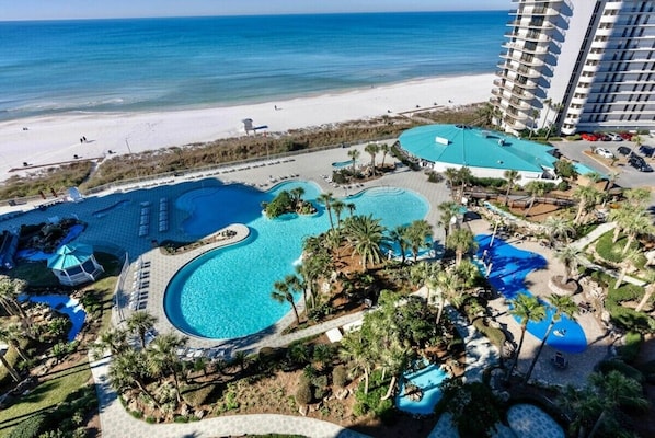 If you are participating in an event at the Edgewater Event Center, then this property is excellent. We were able to walk over and didn’t have to mess with parking. It was amazing. Also, in our free time, it waeasy to walk to beach or grab the shuttles when we wanted to utilize the pool/beach areas. Property felt safe - Gated with guarded entrances. Beach is beautiful with option for rental chairs/umbrellas. Food at the pool restaurant was good and easy to order take-out while sitting at beach/pool. The room itself was a great fit for our group. Recently updated. Clean furniture. Stocked kitchen. Double queen beds in second bedroom was nice. Primary bedroom was large with great bathroom/closet. Beds were comfortable. View from patio is of golf course and main road. We liked the large smart TV’s and easy to read instructions/labels on everything. We felt right at home quickly. Suggestion: We had groceries delivered on day of arrival. Owners provide a small amount of necessities for your first couple of days, but I recommend buying extra dish washer detergent and toilet paper. My only “negative” comment would be the noise from the condo above. I’m pretty sure it was a family with lots of small children and their footsteps were very loud. This is not something owner can control and I doubt would ever be THAT loud again, but wanted to at least mention - as it was our only “gripe”. Great place. We would stay again. Host is easy to communicate with. 5 stars.