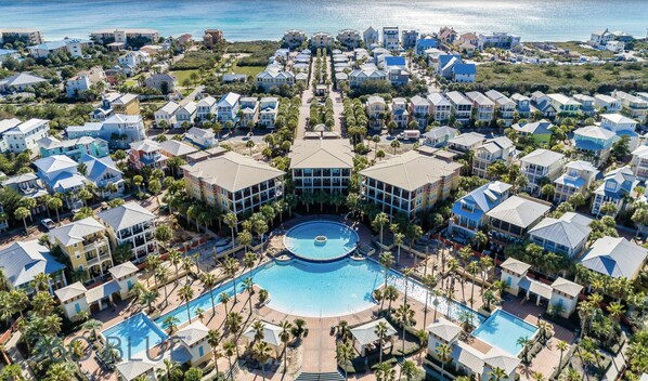 Southern Palms is a spacious 4 bedroom/ 4 bath home with a calming coastal aesthetic that will make you feel right at home and ready to relax. It has been newly renovated, professionally designed and no detail was overlooked. All furniture was carefully selected to be family friendly as well as comfortable and the bedrooms have been outfitted with luxurious bedding, comfortable mattresses and blackout shades. It’s all of those little details that will make this home the perfect spot for your vacation. Not to mention, with porches on each level you will definitely enjoy the beautiful Florida weather! Southern Palms is located directly across the street from the amazing 12,000 sq foot lagoon pool and a beautiful grassy area. Just out the front door is a tram stop where you can take a 3 minute ride to the breathtaking beaches that 30A is known for.