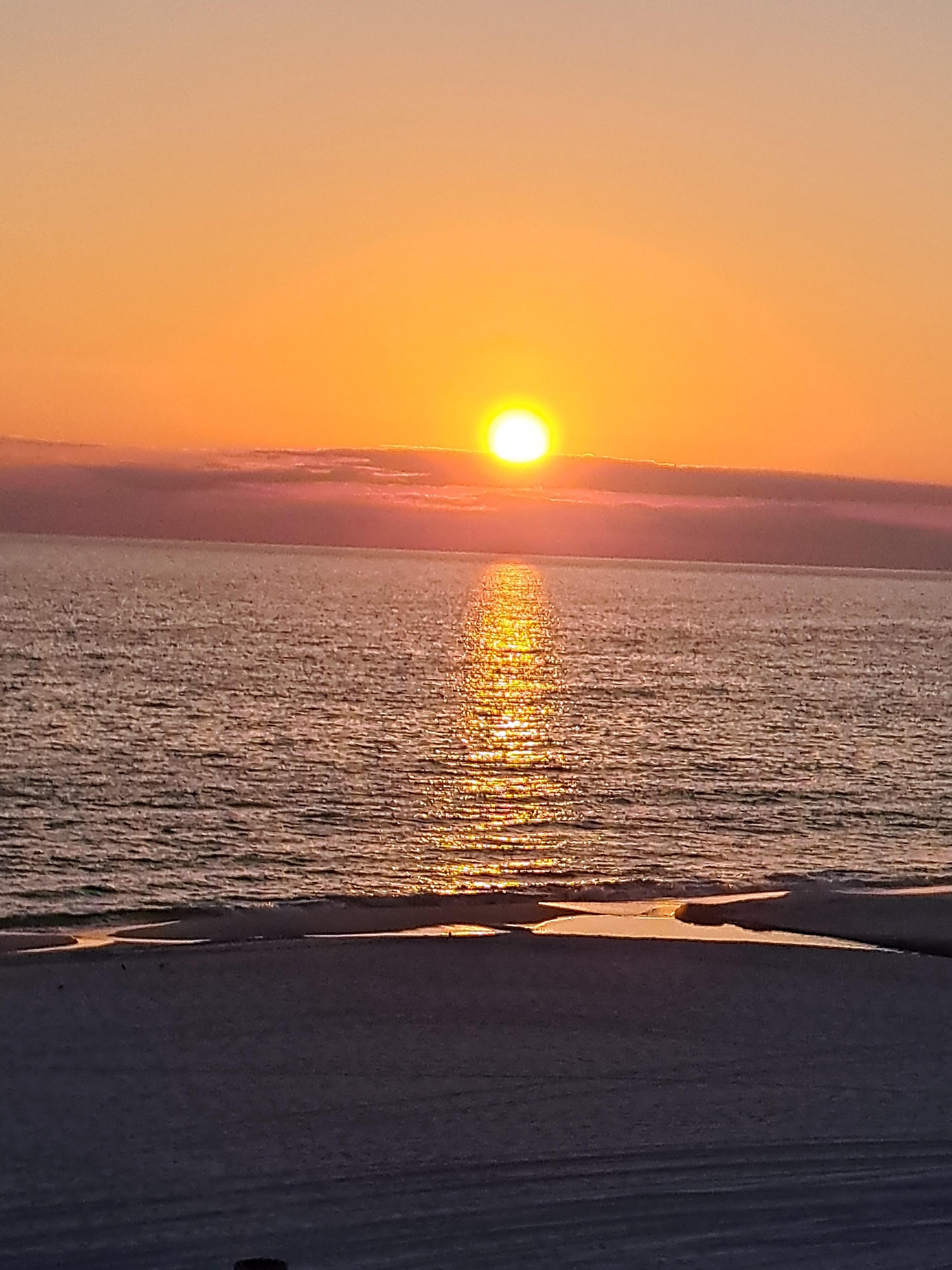 • Florida Panhandle featuring a sandy beach, a sunset and general coastal views