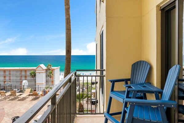 🌊 Origin 506 | Gulf View Studio w/ Upgraded Balcony Furniture | Easy Pool Access | Steps to Beach | Near Pier Park! ✨