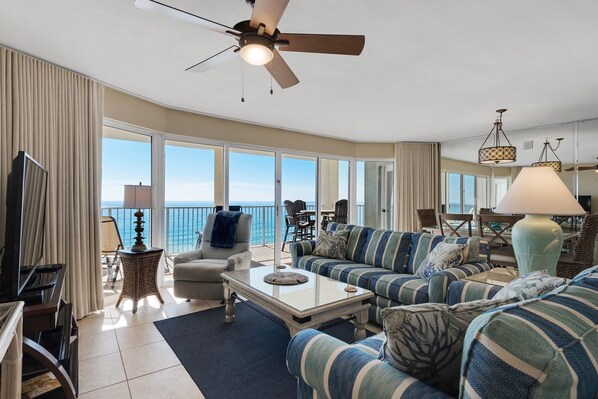 This Condo is amazing! The view from every room is of the ocean and it is gorgeous!! The condo is so relaxing and nicely decorated. There was plenty of of room for us to spread out as the condo is very large. Our stay was awesome and we certainly will be returning.