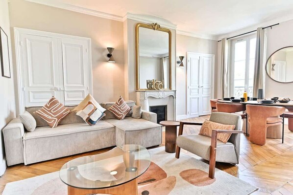With 4 bedrooms equipped with queen-size beds, a queen-size sofa bed, and everything you need for your stay, this apartment combines Parisian charm and modern conveniences for an unforgettable experience.
