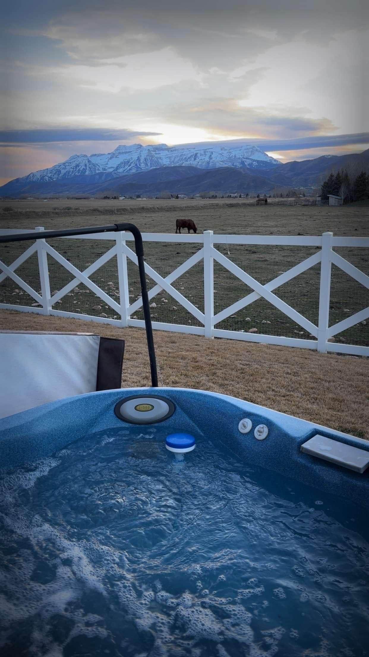 ✔ Private Hot Tub: Soak in the bubbling hot tub while taking in the breathtaking mountain vistas.