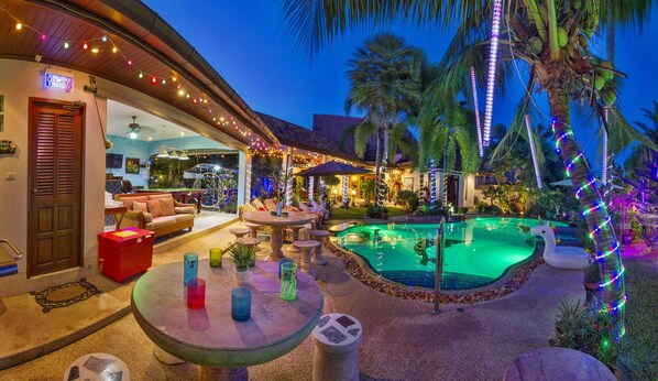We booked this Villa for a family visit for my wifes 50th Birthday. We asked the owner if it was possible to book it within our budget and "RAY" agreed the price! We were delighted. As holiday time approached, Ray arranged pick up from airport, he stated a price for two hire cars, but I stated I could get cheaper from the airport - a bit of "scaremongering re insurance" and he convinced me to go with his price. We asked him to get some general shopping in, which he did. Now we had one car for two weeks and one car for one week. He presented us with a bill, - which we believed excess if, but we gave him the money to show good will. We then find that the owners are living behind the wall of the Bar area! We had no privacy at all! We were told that "sound carried" and the electric in the bar goes off at 11pm every night! Bearing in mind we are on holiday with teenage kids. We compensated by putting music on our phones for background music - we were chastised! We thought ok, we cant do much about this, so don't let it spoil our holiday. By end of week one, Ray (the English owner) approaches me in an aggressive manner stating we have a "list of problems", the main one being that we left the aircon on when we went out!!! We asked how did he know, and it turns out that his wife "ying" enters the villa everytime we leave! Now in our opinion, Ying must have switched aircon off - However we were billed anyway - now we had all of our important docs and private posessions there - who is to say that our passports weren't copied? There was a "frog infestation" around the pool, we had a snake (a real one), a Huntsman poisonous spider to deal with also. You cant walk to the village which is 3 miles away with kids, as my brother and I did it and were attacked 3 times by aggressive dogs, luckily no injuries! The place is lit up like Las Vegas until 6.30 am, and thin curtains, so sleep was disturbed. There are lists of rules and regulations everywhere stating fines would be charged - The day before we were due to leave we were presented with another substantial bill - , some of which was for breakages, which we believe should be in the price, but were happy to pay, but extra cleaning, charcoal, use of washing machine, 5 missing towels (not), was harsh. On last day the wife is caught removing keys to gates and doors while we slept, imprisoning us until payment was made! Of course they deducted money from my deposit for a punctured inflatable, which there are many.