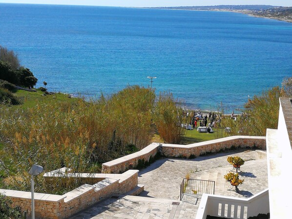 Das Haus ist bereits etwas in die Jahre gekommen, aber zweckmäßig eingerichtet und bietet genug Platz für mehrere Parteien. Die Ausstattung ist einfach, teilweise spärlich, jedenfalls keineswegs luxuriös, es fehlen etwa Auflagen auf den Plastiksitzen, Tischtücher für den Plastiktisch, vernünftiges Geschirr / Besteck, ordentliche Weingläser und andere Dinge. Leider ist die Lage auch nicht so, wie wir erhofft hatten Doppelpunkt das Haus liegt in einer Wohnstraße und bietet nur sehr eingeschränkten Blick auf einem Teil des Meeres über das Ende der Straße. Ansonsten liegt das Anwesen in einem typischen Badeort, mit einem oder zwei vernünftigen Restaurants und begrenzten Ausflugsmöglichkeiten. In jedem Fall nach Patù fahren, das lohnt den Besuch mehrfach. Autofahrer sollten aufpassen Doppelpunkt die Auffahrt zum Stellplatz ist sehr steil.