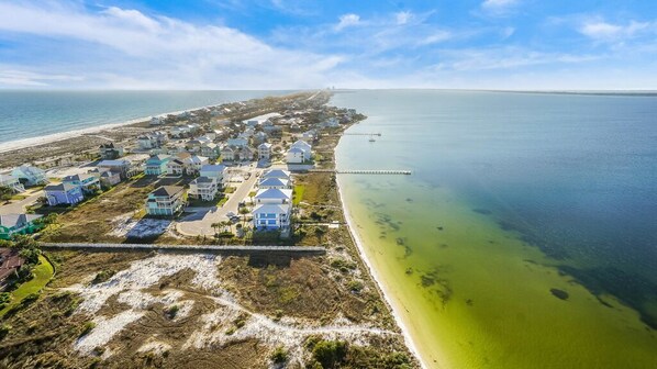 Portofino is situated on 28 beautiful acres in Pensacola Beach between the emerald waters of the Gulf of Mexico and the gentle shores of Santa Rosa Sound. It is also adjacent to the pristine Gulf Islands National Seashore. The land itself is called Santa Rosa Island; it is the world’s largest barrier island.