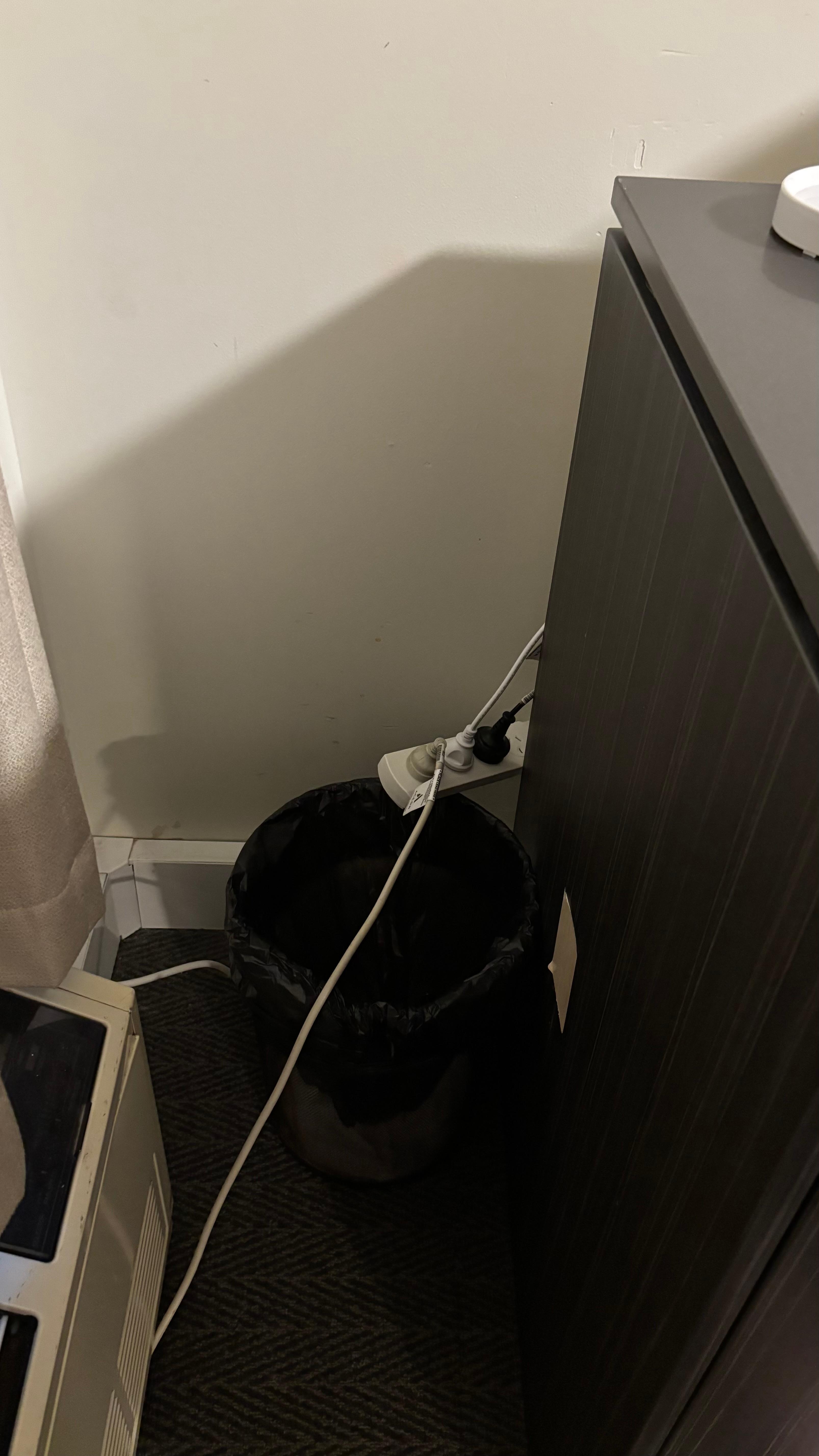The reception staff is efficient and friendly. Room decor is dated and gives a somewhat run down feeling. Power outlets are mostly at foot level - not particularly senior-friendly as I had to stoop to connect. In my room the newer of the two air conditioners give out warm air but does not stop even though the desired temperature is reached. I had to use the older air conditioner which fortunately worked well and quietly enough, but the air filter needs cleaning. There is a power bar for the hot water pot and toaster which strangely sits on the trash bin because the cable is not long enough. That’s not quite professional. Note: I couldn’t add more than one photo as Expedia says my two photos exceeds the size limit (very strange indeed!)