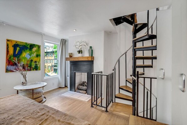 Access between floors is via a spiral staircase. Not suitable for guests with mobility issues.