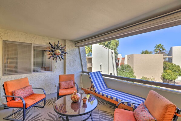 Desert living at its finest awaits in Scottsdale when you book a stay at this 2-bedroom, 2-bathroom vacation rental with a community pool and hot tub! Located less than a mile from Old Town Scottsdale, this condo in the Maya provides a fully equipped kitchen, a 3rd-floor patio, and is near golfing and hiking. There are endless ways to enjoy your vacation — explore Downtown Phoenix, hike Camelback Mountain, or visit the Desert Botanical Garden. Top the day off with a drink and bite in Old Town!