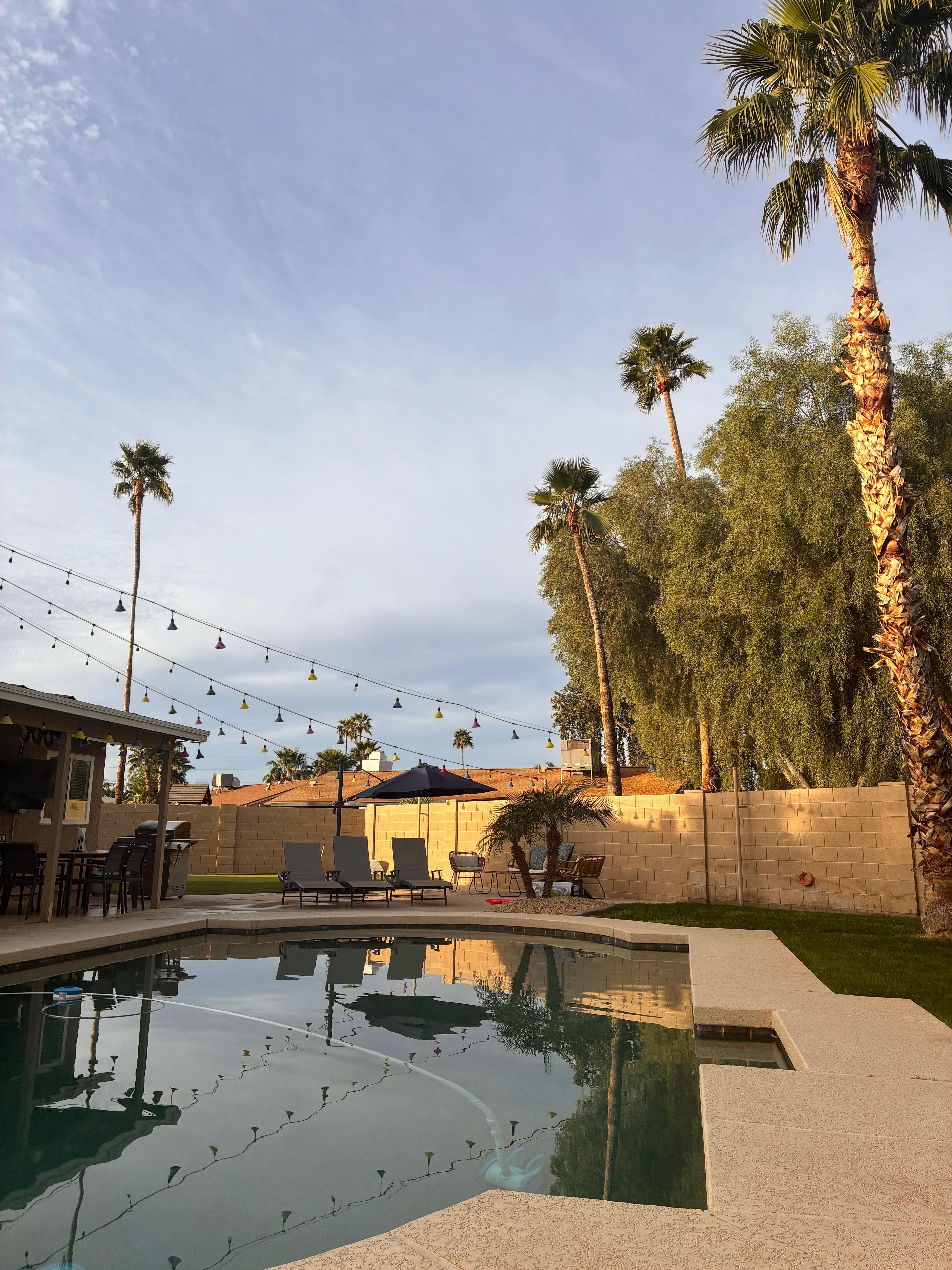 Inside you will find contemporary design, a spacious open floor plan, and enough space for everyone, w/ 4 bedrooms and 2 full baths 1,740 Sq Ft - Experienced Superhosts, provide worry-free, amenity rich stays. - Comfortably sleeps up to 10 guests - Kitchen: Fully equipped, stainless steel appliances, Quartz countertops, Keurig coffee maker, w/ K-Cups supplied, tea kettle, cooking basics - Outdoor Living: Private heated pool, putting green, gas grill, covered patio with dining table & TV, outdoor seating area, pool lounge chairs, string lights, corn hole - Master Bedroom: King Bed and en suite bath Bedroom 2: Queen Bed Bedroom 3: Queen Bed Bedroom 4: Two Twins Living Room: Queen Sofa Sleeper - General: Free 500 mbps WiFi, central heating/air conditioning, single-story home, in-unit laundry machines, complimentary pool heat - Parking: Garage (2 vehicles), driveway (2 vehicles) Distance to popular attractions: - Butterfly Wonderland/OdySea Aquarium/Top Golf/Indoor Sky: 5 miles - Talking Stick Casino/Resort/Golf Club: 6 miles - McDowell Mountain Golf Club: 6 miles - Gainey Ranch Golf Club: 6 miles - TPC Scottsdale - Waste Management Phoenix Open: 7 miles - Barrett Jackson: 7 miles - Arabian Horse Show: 7 miles - Kierland Commons/Scottsdale Quarter: 8 miles - Grayhawk Golf Club: 10 miles - Old Town Scottsdale: 11 miles - Scottsdale Stadium San Francisco Giants Spring Training: 11 miles - Camelback Mountain: 11 miles - We-Ko-Pa Golf Club: 11 miles - Mayo Clinic: 12 miles - Piewesta Peak: 14 miles - Sloan Park Chicago Cubs Spring Training: 15 miles - Papago Park/Desert Botanical Garden/Phoenix Zoo: 15 miles - Arizona State University (Tempe Campus): 17 miles