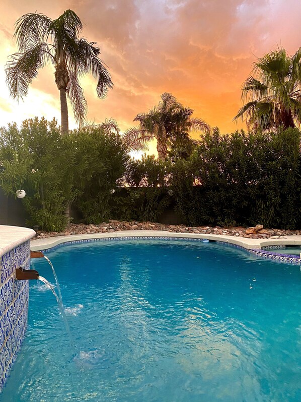 Offener sonniger Grundriss mit Tommy Bahama-Flair. Die meisten Zimmer haben große Schiebetüren, die zum schönen sonnigen Garten mit Pool / Whirlpool führen, unglaubliche Bepflanzungen, darunter ein Grapefruitbaum, Palmen und eine Vielzahl von Kakteen. Im Jahr 2020 neu renoviert mit neuen Böden, Fenstern, Beleuchtung und Fliesen. 6 Fahrräder zur Verfügung gestellt, um zu den unglaublichen Kierland Commons und Scottsdale Quarter weniger als 2 Meilen entfernt zu fahren. Das große Hauptzimmer verfügt über einen eigenen begehbaren Kleiderschrank, eine private Terrasse mit Blick auf den Pool, einen Fernseher, ein schönes Kingsize-Bett und eine Doppelkopfdusche im luxuriösen Hauptbadezimmer. Ein Gästezimmer öffnet sich zum Hof / Patio und Poolbereich und hat auch ein schönes Kingsize-Bett. Das dritte Zimmer verfügt über 2 Einzelbetten und viel Stauraum. In der Küchenecke gibt es einen Tisch mit 6 Stühlen und im Familienzimmer gibt es einen weiteren Tisch mit 4 Stühlen, an dem Spiele gespielt oder als weitere Option zum Essen verwendet werden können. Draußen gibt es einen großen Tisch mit 6 bequemen Stühlen unter einer überdachten Terrasse und einem großen Grill aus rostfreiem Stahl. Wir empfehlen, mit dem Fahrrad oder zu Fuß dem Bag Piper zu lauschen, der jeden Abend in der Abenddämmerung vor offenen Feuerstellen hinter dem Westin / Kierland Hotel spielt, und dann in einem der vielen großartigen Restaurants auf der anderen Straßenseite zu Abend zu essen.