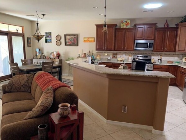 2 bed2 bath 2 car garage with additional golf cart garage with golf cart and 2 bikes. It a delwebb community with 24 pickle ball court and 27 hole troon golf course. 8 TENNIS COURTS exceptional workout areas, 2 pools and hot tubs. Patio with gas fire pit and BBQ. Large custom water feature, private backyard with block wall, 30 minutes drive to super bowl. $500 non refundable deposit.