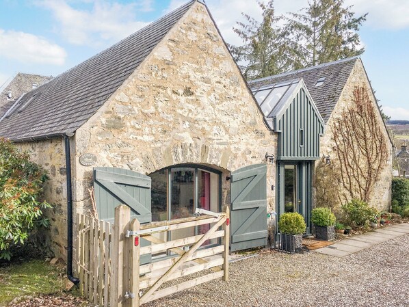 Bedroom 3: Double (4ft 6in) Bed Ensuite: Bath With Shower Attachment, Toilet. Electric heating, electricity, bed linen, towels and Wi-Fi included. Travel cot and highchair.. Secluded south facing garden with lawn and paved seating area, wooden bench, garden furniture, small BBQ and chiminea. Private parking for 2 cars. No smoking. Small dogs only please.. Escape to the tranquil village of Strathtay with this attractive three bedroom cottage. It is 5 minutes’ walk to the local post office and general store, riverside pub, restaurants and an award-winning chocolatier with coffee shop and gifts. Close by there is a children’s play park. Home grocery deliveries are made by some supermarkets. On the southern edge of the Cairngorms National Park, the cottage offers a perfect blend of comfort and natural beauty, making it the ideal escape from city life. Gushat Cottage, built around 1865, was developed from two separate buildings, cleverly joined together to make a unique family home.