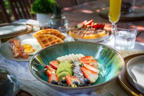 The Master Suite is sure to impress. The king bed framed by a beautiful custom headboard and high end mattress will please even the pickiest sleeper. The large room also has a flat screen TV, access to the private terrace and a small seating area which is the perfect spot for a book and an early morning coffee. Head into the master bathroom where you'll find double sinks, walk-in shower and a large walk-in closet. This oasis has been carefully crafted for your comfort, you will certainly have a hard time getting out of bed every day!