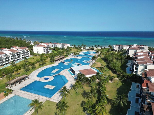 Las áreas verdes y comunes de mareazul te permiten disfrutar de unas vacaciones de ensueño, con jardines, alberca tipo resort, restaurante, bar y un exclusivo beach club privado.