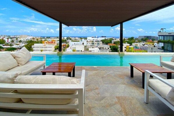 - Ideal stay for up to 6 friends or family in a central location in downtown Playa! - Seaview rooftop pool, BBQ area, gym, business center & 24/7 security onsite - Good WiFi & laptop-friendly workspaces, Smart TVs in all rooms & a full kitchen - Steps to the beach & 5th Ave, walk to everything in minutes, underground parking - Book now for an unforgettable Playa del Carmen beach vacation! Discover the merging of convenience and stylish leisure in the heart of downtown Playa del Carmen. You’ll be at Arenis Condo Living, just 5 blocks from the beach and 4 blocks from the famous 5th Ave, lined with cafes, bars, restaurants, boutiques, souvenir shops, nightlife and prime people-watching. Indulge in nearby shopping malls like Paseo del Carmen, Quinta Alégria, and the charming boutiques of Calle Corazón. For everyday needs, there’s a Walmart and Mega supermarket nearby and convenience stores like 7-11 and OXXO, just steps away. Step into this sleek, stylish condo. Its open design seamlessly blends the sitting area, the kitchen and the dining area for quality time together. The sitting room has a great sofa facing a Smart TV for relaxing downtime moments. This sofa can also be a double bed for two sleepers! Via wall-to-wall sliding glass doors, you’ll have access to your private balcony with a table and chairs to enjoy some fresh air, a meal, a beverage or just a quiet moment to yourself. There’s a fully equipped kitchen with all the essentials to prepare meals at home. You can dine in at the plush dining table or sit here to work on your laptop if needed. There are two bedrooms, the first with a king bed and the second with two single beds. Both rooms feature ensuite bathrooms, TVs, room-darkening shades, spacious closets, AC, ceiling fans, quality linens and pillows. There is a white noise machine in the second bedroom to help with the noise from the karaoke bar next door. And there's more! The Arenis Condo Living complex amenities include a rooftop pool and sky lounge, BBQ area, gym, lobby lounge, two elevators, business center with WiFi, underground secured parking and 24/7 security. Don't miss out on the beauty and charm of Playa del Carmen from the heart of it! Reserve your spot today and start packing for your trip to a tropical paradise. You’ll have full and exclusive access to the apartment and shared access to the complex amenities. This is a self-check-in property using a code to the lockbox to retrieve the keys. The code will be sent before your arrival. You’ll have complete privacy during your stay, but we’re available 7 days a week. Should you need anything, just send us a message. In the heart of Playa del Carmen, just 4 blocks from the famous 5th Ave (La Quinta Avenida!) lined with restaurants, bars, cafes, boutique shops, souvenir shops, vibrant malls, and more, and just a 10-minute walk to the beach. There are a few big grocery stores, an organic market, fruit stands, and a great cafe next door. Plus, the main ADO bus station is only a few blocks away. This location is ideal! The condo in ARENAS CONDO LIVING, about 56 km | 35 miles from the Cancun International Airport (CUN). It’s best to pre-arrange airport transportation. Please let us know if you need any assistance. If you come by car, you’ll have one underground parking spot at the complex, but just know at this location, you’ll be within walking distance of almost everything! For any sightseeing or activity further away, you can easily rent a bike, take a taxi, or go by ‘colectivo’ (shared-ride vans) or the first-class ADO bus where you need to go. Please note there's ongoing construction happening nearby. You're likely to hear construction noise during working hours; Monday through Saturday, from 8am to 6pm. Please review this information before booking to ensure a pleasant stay. If you have questions, don’t hesitate to contact us. - Travelers must be at least 21 years old to book. - Guests might be required to present an official ID at check-in or during the stay. - No more guests than those listed on the reservation are allowed. - No smoking of any kind inside the condo! Drug use and illegal activity on the premises are also strictly prohibited. Failure to comply results in a $300 fine. - No parties, events, or excessive noise after 10 pm. Please respect the neighbors. - Hanging clothes or towels over the balcony is not allowed. - Cleaning service is available at an extra cost. Let us know in advance to book it. - There are outdoor security cameras for safety and security. - Guests are responsible for damages that occur or extra cleaning costs as a result of their stay. - Pets are not allowed. - Pool and common area rules and hours must be respected. - No unregistered guests will be permitted on the property without written permission from the property management/owner. - Check-in and check-out times must be respected. Please advise if you would like an early check-in or a late check-out. Fees may apply. - Our goal is to ensure a pleasant stay with us, so please let us know immediately if you feel something needs our attention (something fixed, changed, replaced, etc.) so we can fix it at the appropriate time. - We are kind and respectful to all of our guests and their families/friends, so please return the favor to our staff. Thank you!