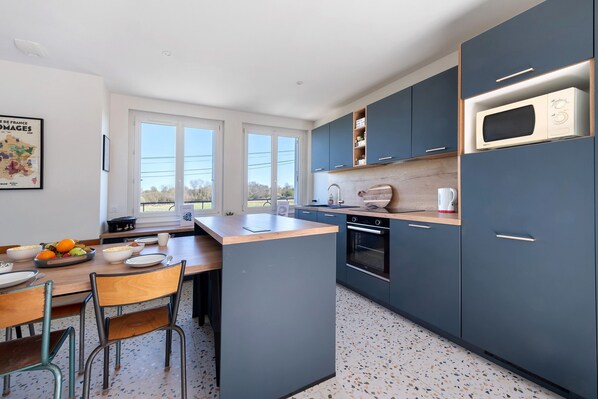 Das Ferienhaus Menbleiz ist ideal für Familien oder Freundesgruppen, die Entspannung am Meer suchen. In ruhiger Lage, nur wenige Minuten von den Stränden entfernt, bietet Menbleiz Ihnen allen Komfort für einen unvergesslichen Aufenthalt. Die voll ausgestattete Küche öffnet sich zu einem großzügigen Wohnbereich – perfekt, um gemeinsam Zeit zu verbringen und Mahlzeiten zu genießen.