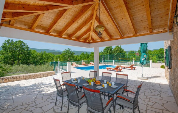 Dieses charmante Steinhaus im dalmatinischen Stil liegt unweit der Stadt Imotski,die bekannt für die roten und blauen Seen ist. Das Haus ist einfach und funktionell eingerichtet und setzt sich aus dem Erdgeschoss und erstem Stock zusammen, welche durch eine Innentreppe miteinander verbunden sind. Das große Grundstück ist teilweise umzäunt. Vor dem Haus befindet sich die Terrasse mit Grill, wo Sie für Ihre Lieben leckere Mahlzeiten zubereiten können. Neben der Terrasse befinden sich der Pool, ein Freizeitraum und ein Kinderspielplatz. Naturliebhaber werden von der Ruhe und der herrlichen Landschaft begeistert sein. Die Kiesstrände von Makarska liegen ca. 20 Autominuten entfernt. Ein Teil des Weges zum Ferienobjekt, ca. 200 m, ist nicht asphaltiert.