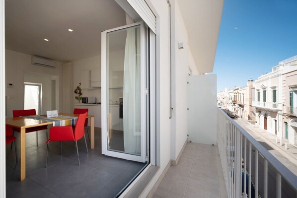Dimore Sarnelli are two newly renovated adjacent apartments on the first floor, one called \"Francesca\" and one called \"Serena\". The apartments are located in the main street of Polignano a Mare, from which they take their name and are about 150m from the main square, 300m from the seaview historic center and about 400m from the famous Lama Monachile beach. The accomodations are equipped with Wi-Fi and air conditioning. Apt. Serena has a double bedroom and a double sofa bed in the living room, it can accommodate up to 4 people.