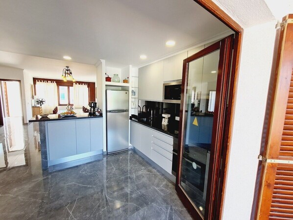 Parkplatz, Sat-TV, Klimaanlage, WLAN, Zentralheizung, Wasserkocher, Grill, Geschirrspüler, Waschmaschine, Mikrowelle, Toaster, Kühlschrank mit Gefrierfach, 2 Kaffeemaschinen, Tischtennis. Eigentum mit Bettwäsche und Handtüchern ausgestattet.